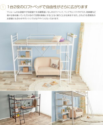 【9/19 20:00~9/24 1:59! 20%OFFクーポン配布中!】ベッド ロフトベッド パイプベッド シングルベッド ハイタイプ 二段ベッド ロータイプ シングル 子供 フレーム ベッドフレーム 収納 ハシゴ階段 ミドル コンパクト 宮付き 高さ調節 2WAY シンプル収納付き おしゃれ