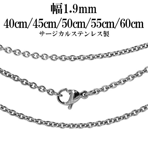 サージカルステンレスチェーン ネックレス あずき チェーン 幅1.9mm 40cm 45cm 50cm 55cm 60cm メンズ レディース ネックレスチェーン ステンレスチェーン ステンレス 金属アレルギー アレルギーフリー 男性 女性 人気 チェーンのみ
