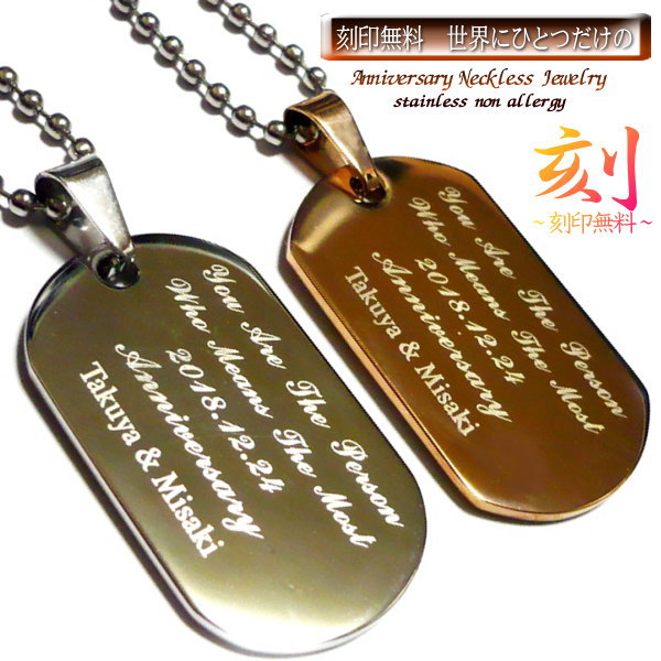 刻印 刻印無料 ペアネックレス にもオススメ◆ 刻印無料 ネックレス ステンレス ペンダント ドックタグ プレート ステンレスネックレス 名入れ ネーム 名前 記念日 シンプル 大人◆1個単品売り◆ 刻印 もでき ペアネックレス 刻印無料 としてもお勧めです
