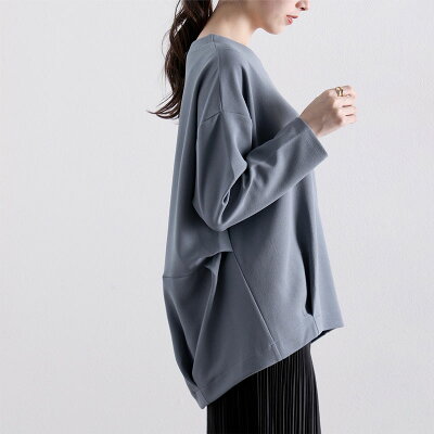 送料無料 レディース トップス tシャツ 長袖 トレーナー 大きいサイズ ゆったり ボートネック ミドル丈 無地 カルゼ タック プルオーバー ブラウス 黒 白 ブルー グレージュ XL L M 秋 冬 2021aw クラシカルエルフ clfl005